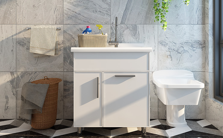 該衛(wèi)生間洗漱柜以純白色復(fù)合板面為主要材料,洗漱臺(tái)更設(shè)置簡便純粹,色調(diào)清新,適合于現(xiàn)代多種衛(wèi)生間格局設(shè)計(jì),更方便人們的生活。