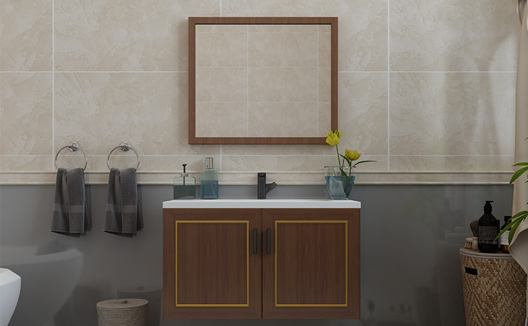 該衛(wèi)生間掛柜以接近原木的色系為主色調(diào),搭配簡(jiǎn)中式設(shè)計(jì)元素,更突顯出設(shè)計(jì)風(fēng)格。整體布局空間合理,采用雙開門底柜收納柜設(shè)計(jì),存取物品更加方便。