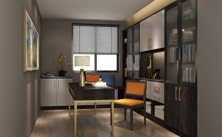 嵌入式墻體書柜設計將書柜與墻體融為一體,既減少了對書房空間是占據(jù),同時還擴大了存儲空間的布局,適合較小戶型使用。新中式創(chuàng)意設計,減少了書房的板氣,更增添了莊重儒雅的氣質。