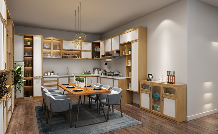 此矮斗柜設(shè)計(jì),以存儲(chǔ)碗具為主要目的,在設(shè)計(jì)風(fēng)格上和整體櫥柜連接,也起到了裝飾性的效果。柜體高低對(duì)比之下,也顯現(xiàn)出家裝的設(shè)計(jì)之感。
