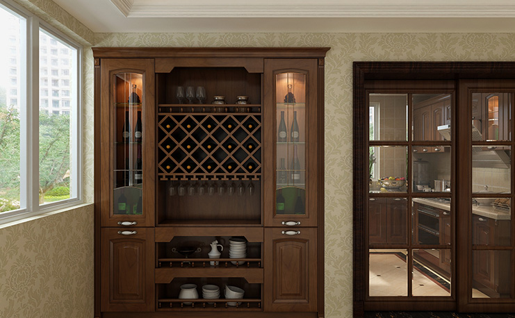 新中式實(shí)木櫥柜整體采用傳統(tǒng)設(shè)計(jì)風(fēng)格,輔助以現(xiàn)代設(shè)計(jì)元素,更添活力與設(shè)計(jì)感,整體廚房更顯穩(wěn)重典雅。