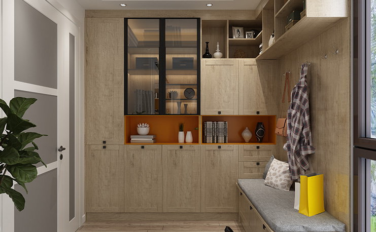 此玄關(guān)柜設(shè)計多適用于空間較大的房子,單獨的玄關(guān)室,立體式的儲物柜設(shè)計,集裝飾、儲物多元于一身,更方便人們出入使用,滿足日常所需。