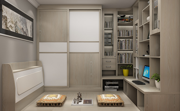 現(xiàn)代簡約臥室榻榻米以一體柜作為地臺,可直接變身床鋪;木紋設(shè)計更加純粹,衣柜設(shè)計更帶來大面積存儲空間,開放柜可添加裝飾品,提升整體生活格調(diào)。